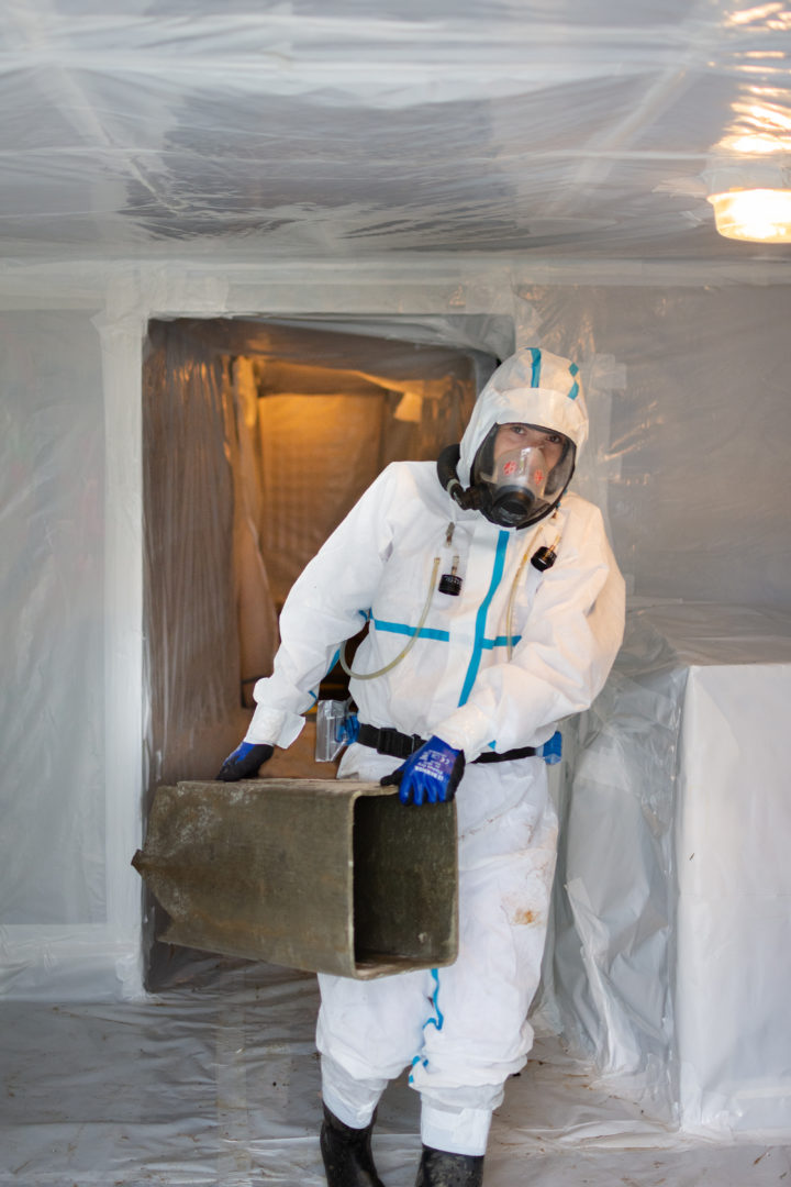 Nous apportons notre savoir-faire tout au long du chantier, lors de la préparation (sécurisation et zone de confinement) durant la phase opérationnelle (retrait d’amiante), lors de la réalisation du conditionnement et de l’évacuation des déchets en décharge spécialisée,